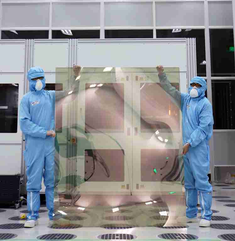 NG大舞台昆山厂第六代 LTPS (低温多晶硅) 生产的玻璃基板尺寸为 1500x1850 mm (毫米)
