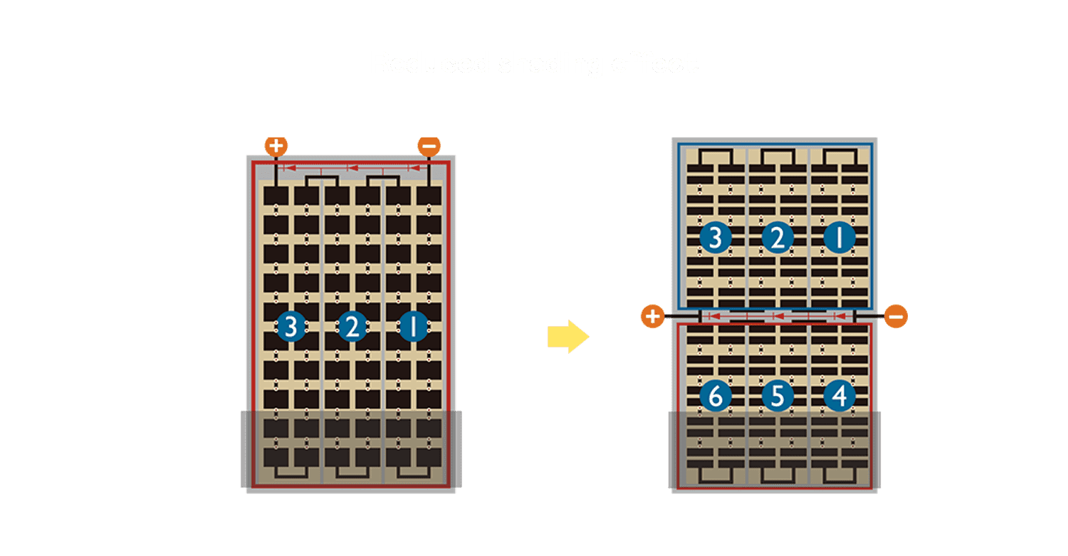 优化的太阳能电池结构设计,,,,不仅提高电流收集效率,,,,降低电池隐裂,,使太阳能模组长期维持稳定的输出效能,,,,提高营运效益。。